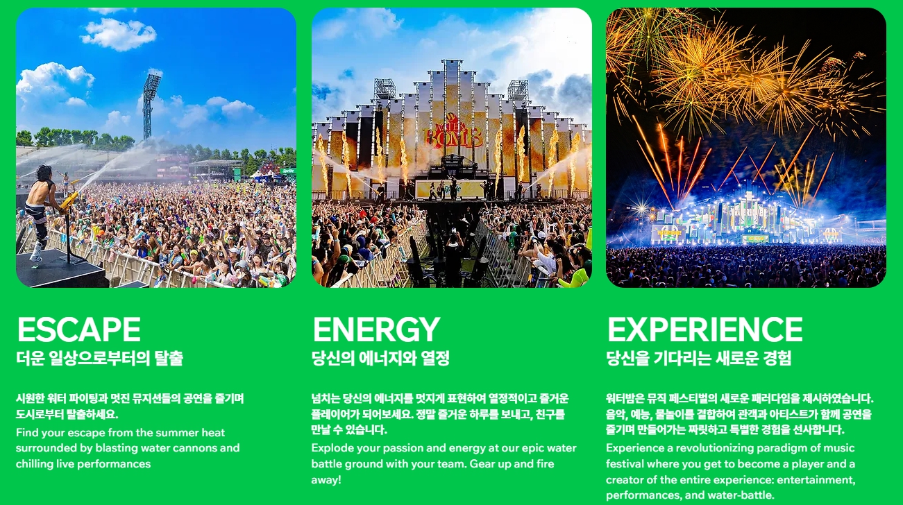 워터밤 뮤직 페스티벌 WATERBOMB 2024 MUSIC FESTIVAL KOREA_ A Water Theme Music Festival. Waterbomb represents summer fun with dance music artists and dynamic water activities.